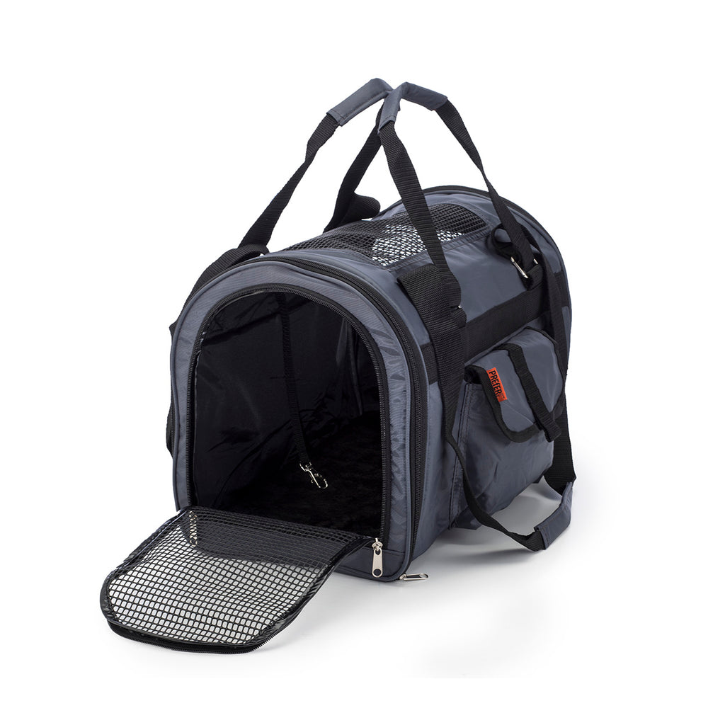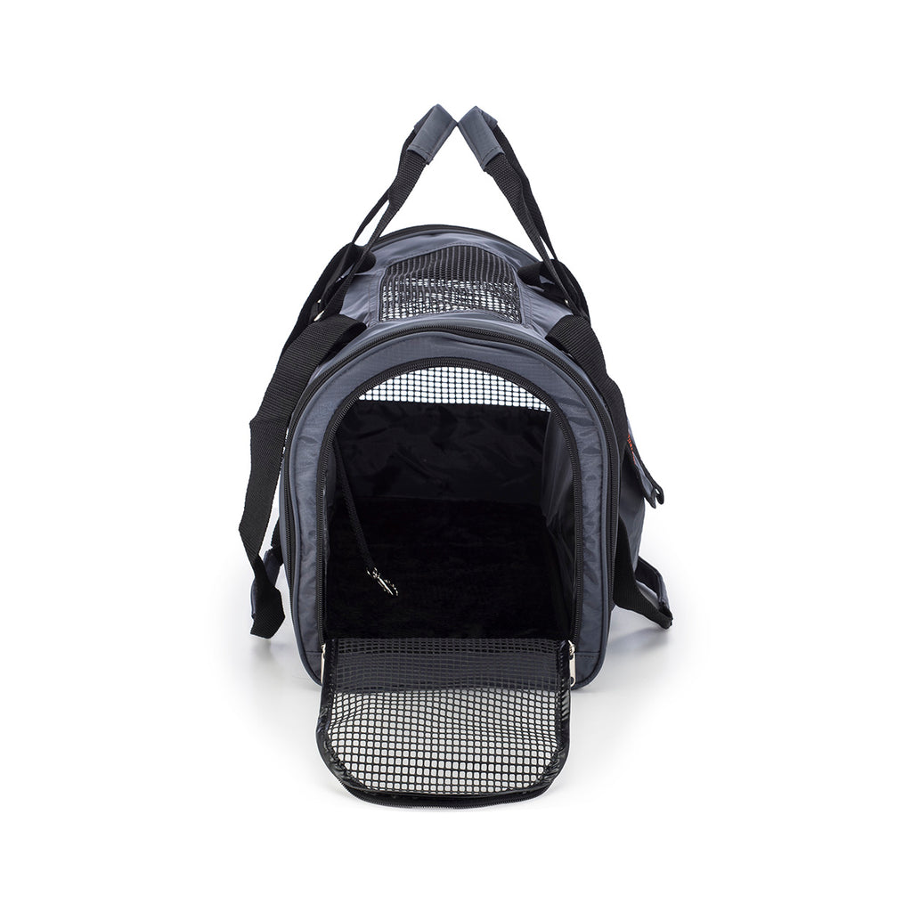 - Mesh-covered windows on three sides of the carrier for ventilation.