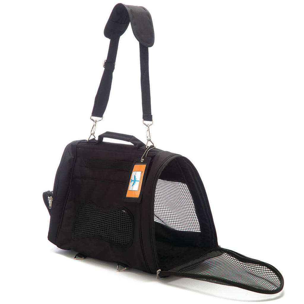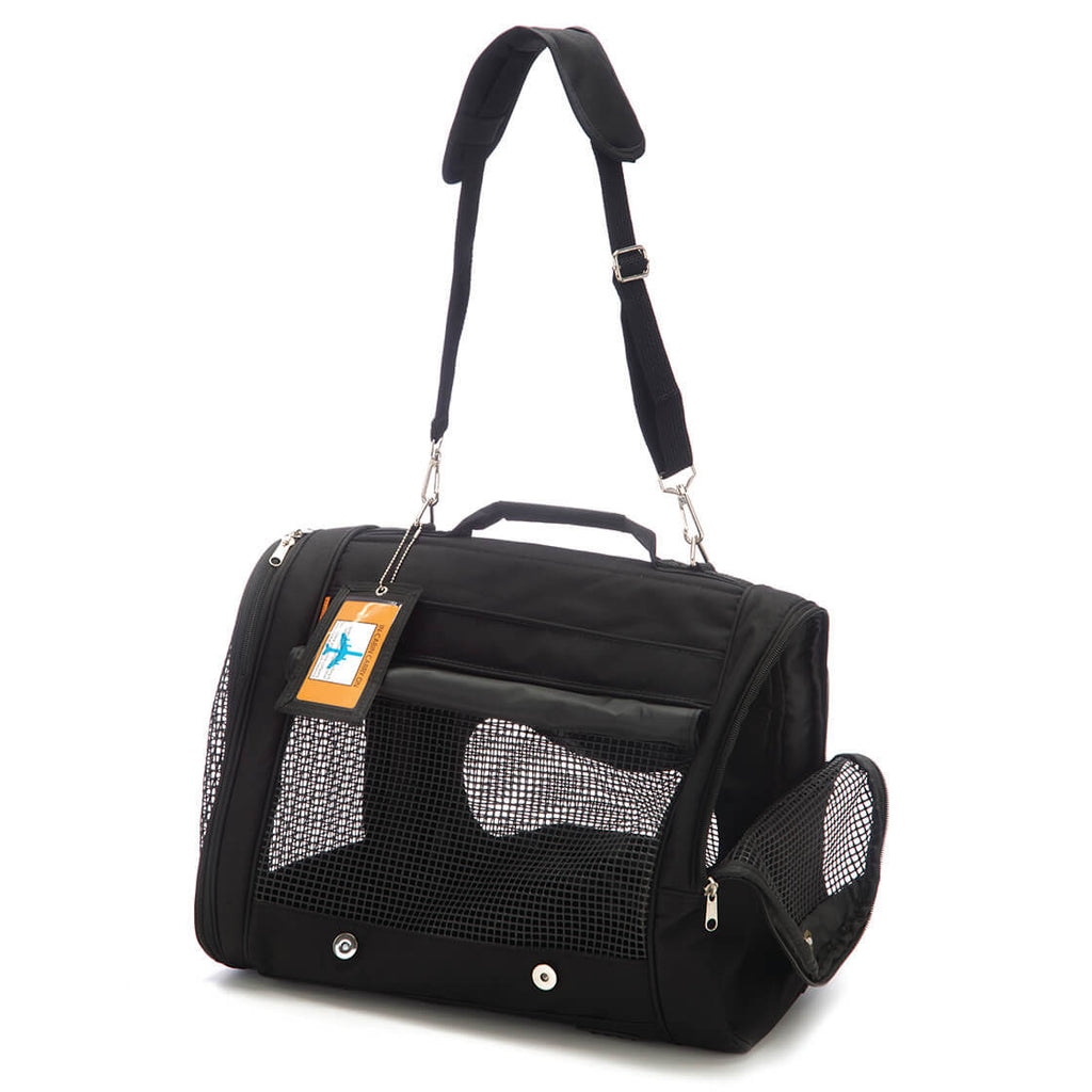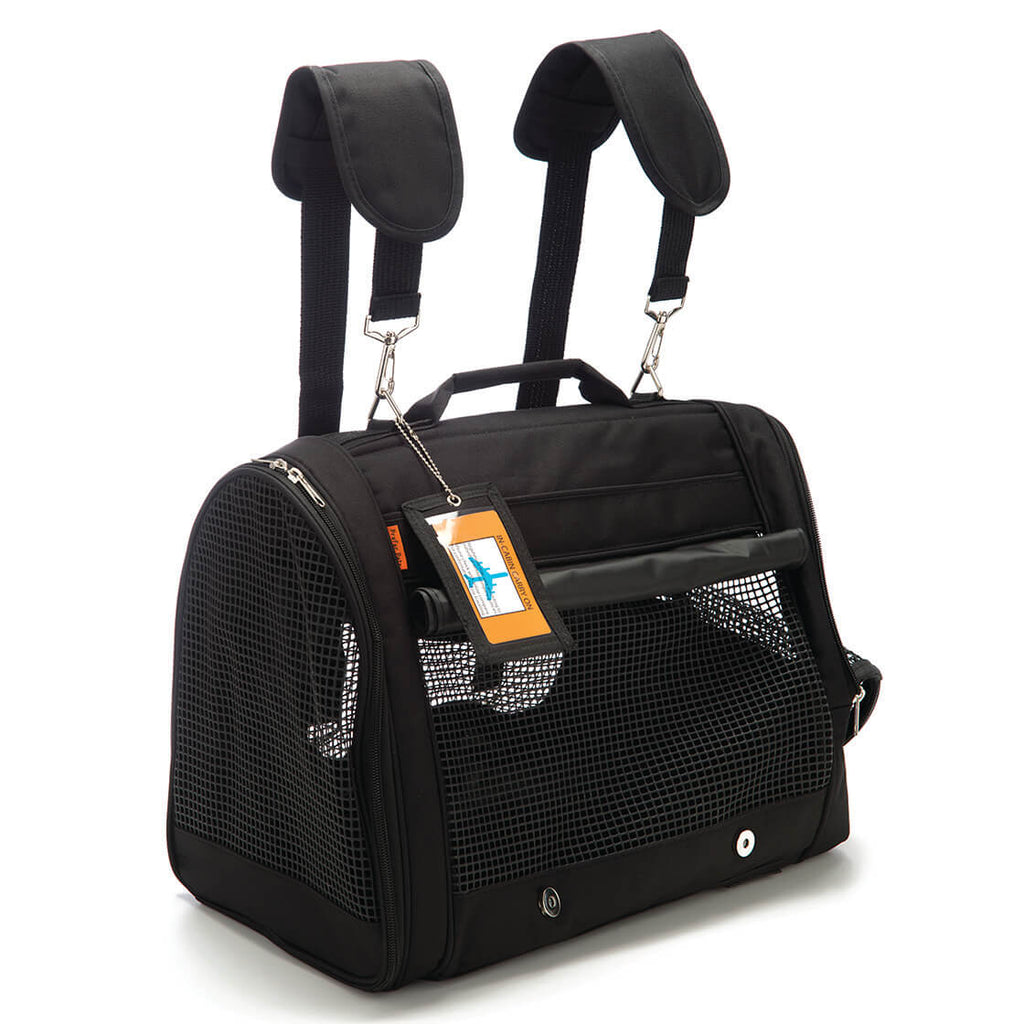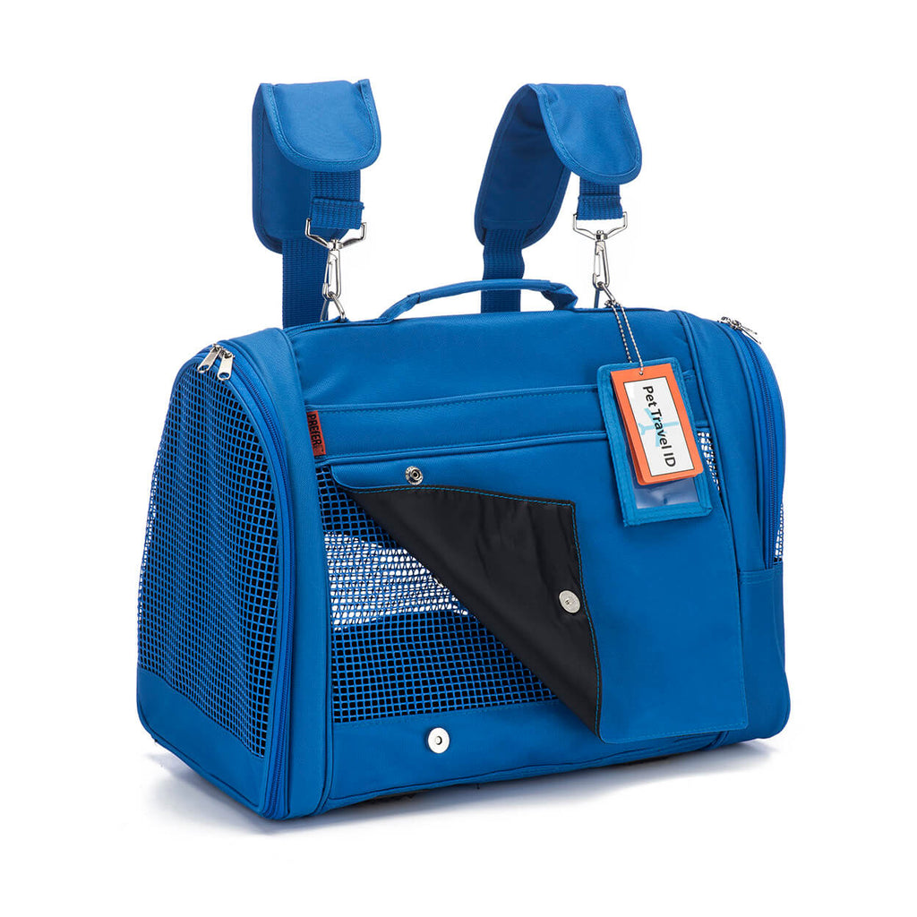This carrier features water-resistant canvas fabric in two contemporary patterns, and complies with major airlines’ in-cabin carry-on regulations. Luggage tag and Pet ID card included.