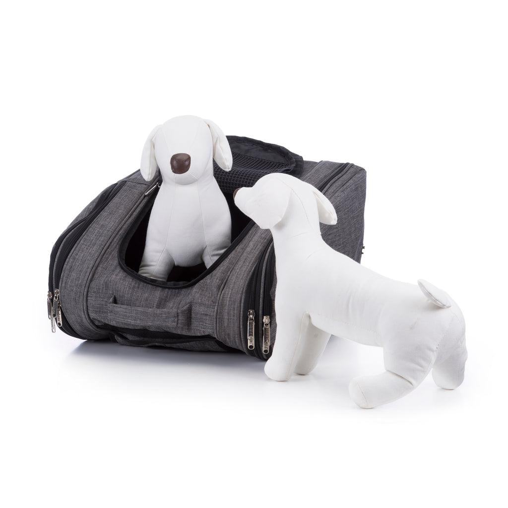 This carrier features water-resistant canvas fabric and complies with major airlines’ in-cabin carry-on regulations. Luggage tag and Pet ID card included.